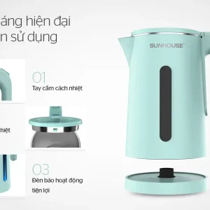 Hãy là người đầu tiên nhận xét “Ấm siêu tốc – Bình đun siêu tốc cao cấp inox 2 lớp chống bỏng 1.8L Sunhouse SHD1351”