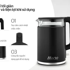- Chế độ tự động tắt khi nước sôi, cạn nước hoặc quá nhiệt