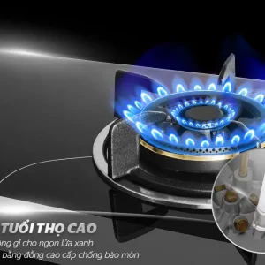 - Đầu đốt bằng đồng thau & họng bếp inox cao cấp