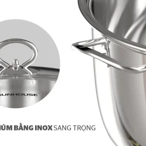 Với quai núm được làm từ inox dang đũa đẹp mắt, bộ nồi inox SUNHOUSE SHG788 càng trở nên nổi bật. Đặc biệt, quai núm được thiết kế to bản, tán đinh chắc chắn, cách nhiệt tốt nên bạn rất dễ cầm và di chuyển trong quá trình sử dụng.