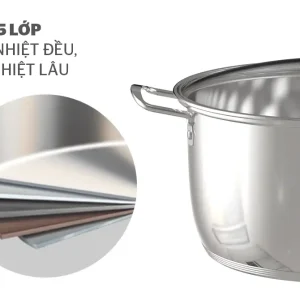 Đáy nồi 5 lớp tỏa nhiệt đều, giữ nhiệt tốt