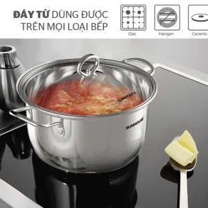Bộ nồi inox 5 đáy SUNHOUSE SHG788 được tích hợp đáy từ giúp sử dụng dễ dàng và linh hoạt trên các loại bếp như bếp gas, bếp từ, bếp hồng ngoại,…