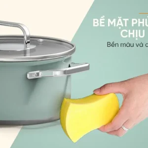 Thân nồi được làm bằng chất liệu Inox 304 cao cấp, chống han gỉ, bề mặt được phủ một lớp sơn chịu nhiệt màu xanh ngọc sang trọng, bắt mắt giúp cho sản phẩm bền màu và dễ dàng vệ sinh mà vẫn an toàn cho sức khỏe.