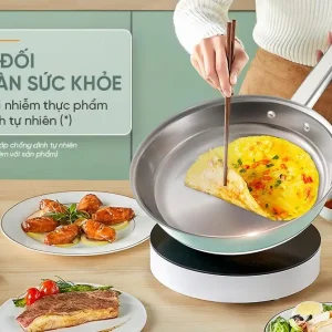 Sản phẩm có cấu tạo đáy 3 lớp bền bỉ, có khả năng truyền nhiệt tốt và tỏa nhiệt đều giúp bạn tiết kiệm thời gian nấu nướng mà thức ăn vẫn chín đều và thơm ngon.