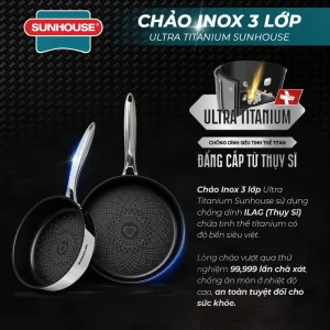 Chảo inox 3 lớp Ultra Titanium Sunhouse STI18M