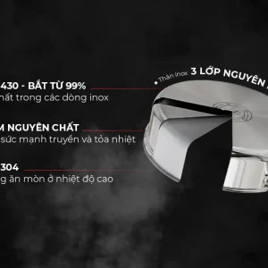 - Tay cầm inox công nghệ Stay-cool: chống bỏng, siêu bền chắc