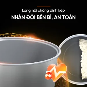 Lòng nồi được làm từ hợp kim nhôm phủ chống dính 2 lớp, giúp hạn chế tình trạng cơm dính vào đáy nồi, không chỉ giúp cơm chín đều, ngon hơn mà còn dễ dàng vệ sinh sau khi sử dụng. Với khả năng chịu nhiệt tốt và không chứa chất độc hại, lớp chống dính bền bỉ đảm bảo an toàn sức khỏe cho cả gia đình.