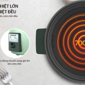 Nồi cơm điện SUNHOUSE SHD8133 được trang bị một mâm nhiệt lớn cùng công suất nồi 700W, nhiệt tỏa đều làm cơm chín nhanh và ngon hơn.