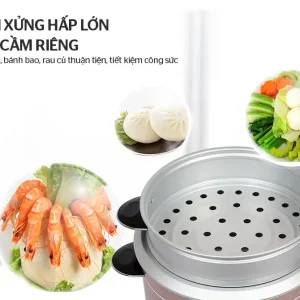 Xửng hấp lớn có tai cầm đi kèm sẽ giúp sản phẩm chế biến được nhiều món ăn ngon hơn như làm bánh, đồ xôi, luộc thịt và rau củ… Điều này rất tiện lợi và tiết kiệm hơn cho những gia đình đông người (nhu cầu nấu nướng cao).