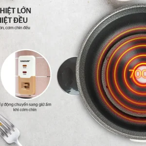 Nồi cơm điện SUNHOUSE SHD8125 được trang bị một mâm nhiệt lớn cùng công suất nồi 700W giúp nhiệt tỏa đều làm cơm chín nhanh và ngon hơn.