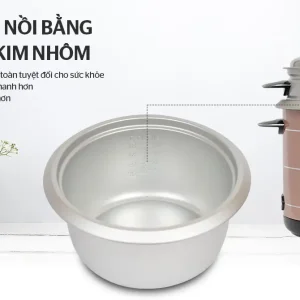Lòng nồi dày dặn, bằng hợp kim nhôm siêu bền. Chất liệu này có ưu điểm dẫn nhiệt tốt và giữ nhiệt lâu, đồng thời an toàn tuyệt đối cho sức khỏe.
