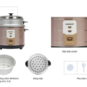 Nồi cơm điện 2.2L SUNHOUSE SHD8135 có vung rời thuận tiện, dễ dàng mở ra đóng vào trong quá trình sử dụng. Nắp vung bằng inox sáng bóng, thân nồi bằng tôn sơn cách điện màu vàng đồng, phủ nhũ chống gỉ giúp nồi luôn sáng bóng như mới.